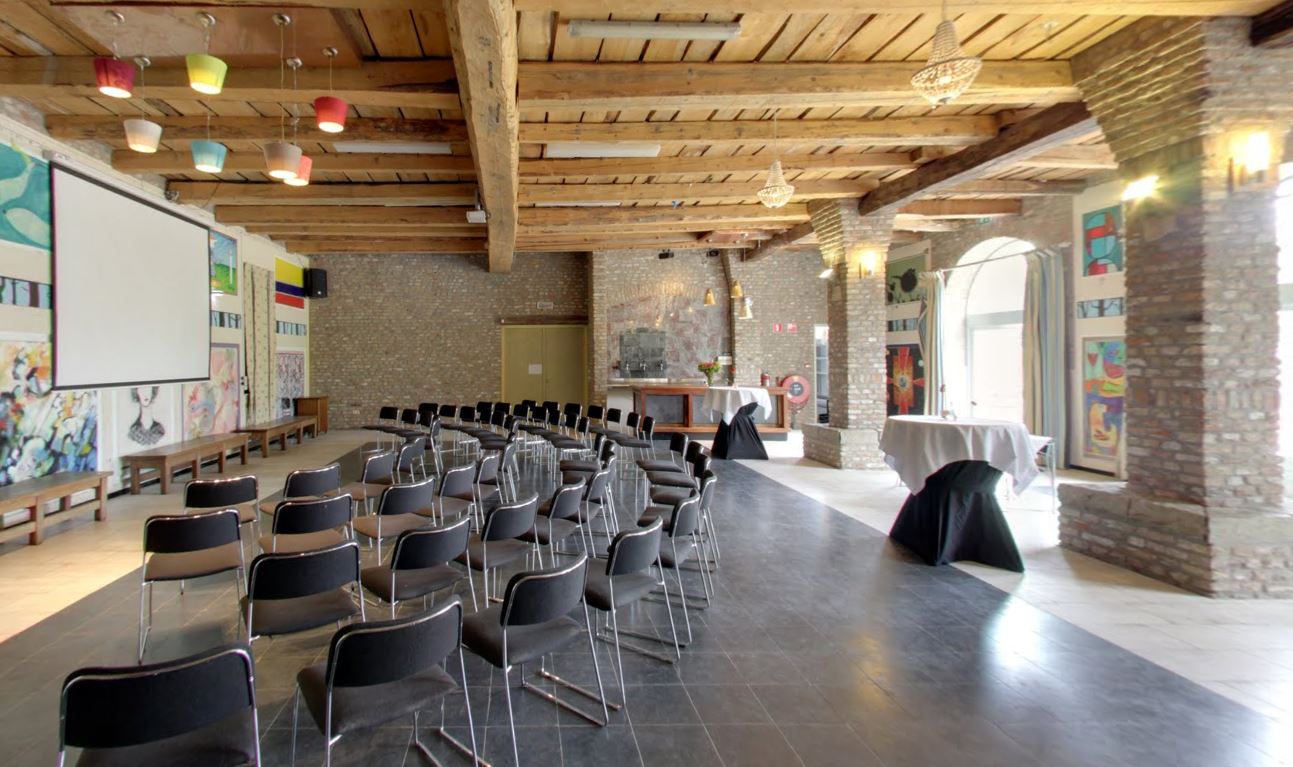 80 - 300 PersonenOp de onderste verdieping van de boerderij ligt de Maaszaal, een grote multifunctionele ruimte tot 300 personen. Op de muren staan schilderingen van kunstenaars uit de regio.